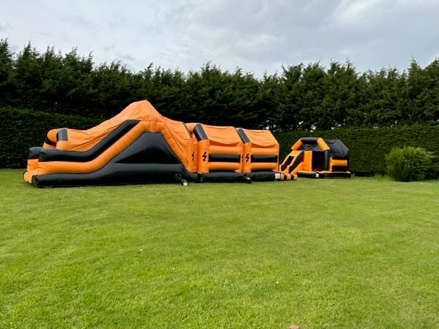 Our SPECIAL OFFER PACKAGE with High Energy Obstacle Course and matching Slide Bouncer Combo., is the ultimate inflatable entertainment solution for any event or gathering. Designed to provide endless fun and excitement, this combo features a 50 x 10 feet assault course and a 12x15ft slide bouncer, perfectly suited for all age groups.
