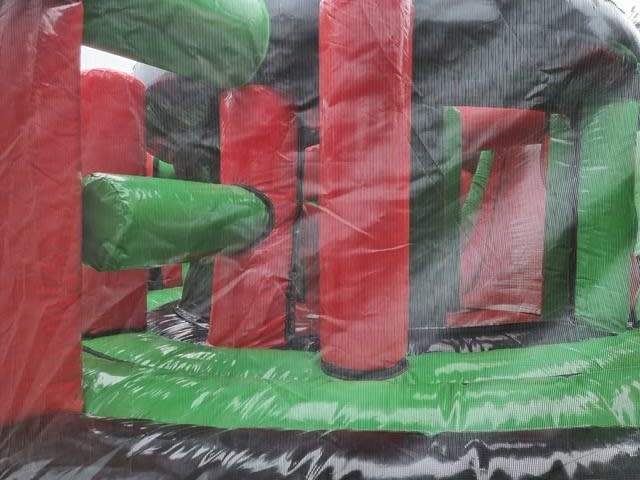 Stand out from the crowd with the vibrant black, red, and green design of this spectacular inflatable with stop and starts. Perfect for parties, events, and gatherings, the Adrenaline Rush Obstacle Course is a surefire way to keep guests entertained and engaged throughout the day.