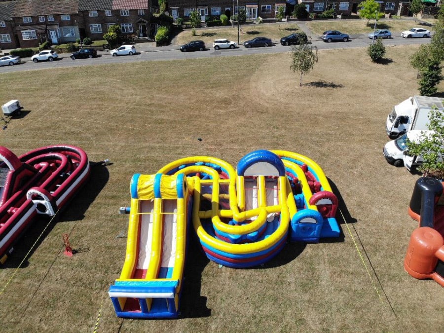 With running track / hurdles and plenty of twists and turns.