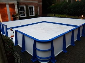 Mini Synthetic Ice Rink.Size 7x7m with slabs, barriers and matting.