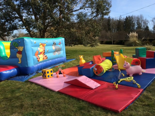 Winnie The Pooh castle 8x14 feet, has a bouncy area and small ballpond to the rear.