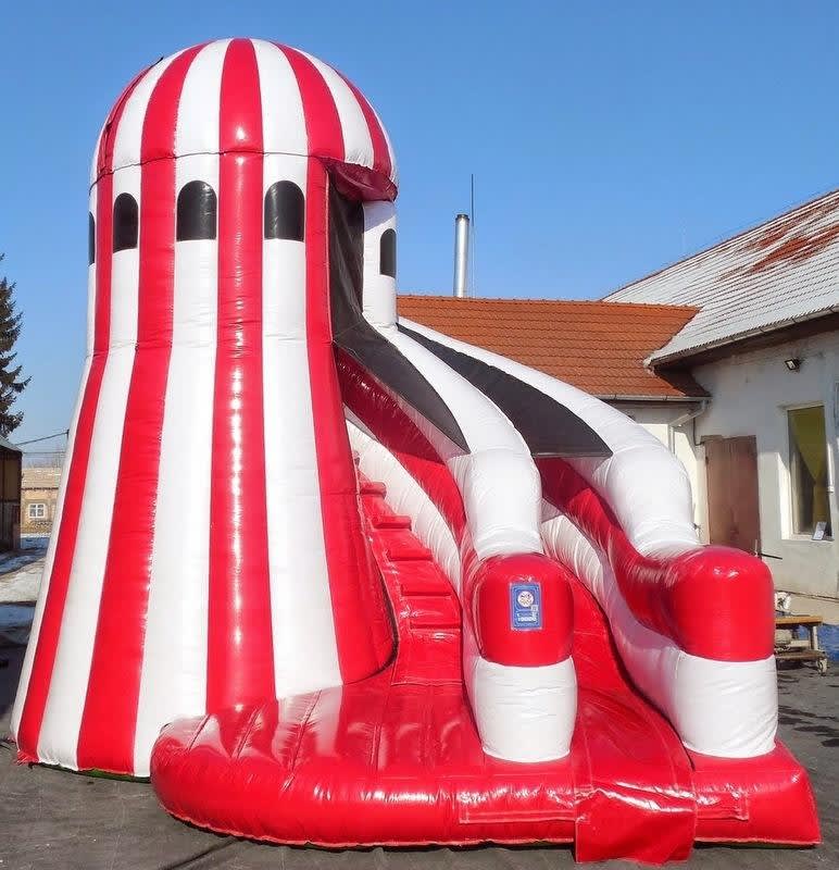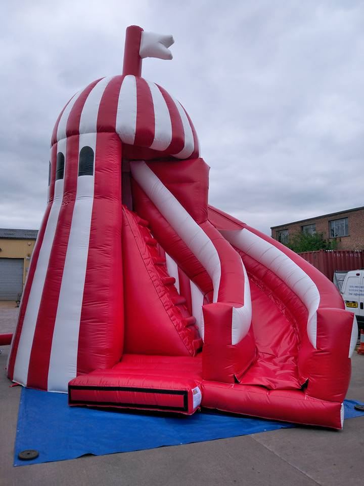 Our stunning new red and white helter skelter. Ergonomically designed for the smoothest, ride.
