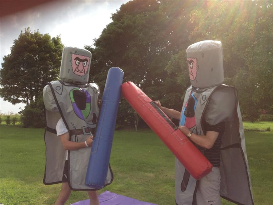 • Duel your opponent on an inflatable gladiator duel.